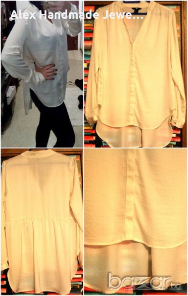 4. Цена 5 евро. Дълга асиметрична риза H&M. Цветът е шампанско. Гърбът е по-дълъг. Размер по етикет EUR 38. 100% полиестер. Няма разлика от нова.