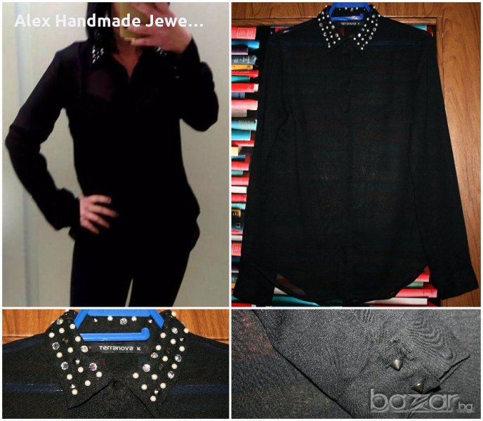 1. Цена 5 евро. Риза от шифон с перли и шипчета Terranova. Без следи от употреба. По етикет е размер М.