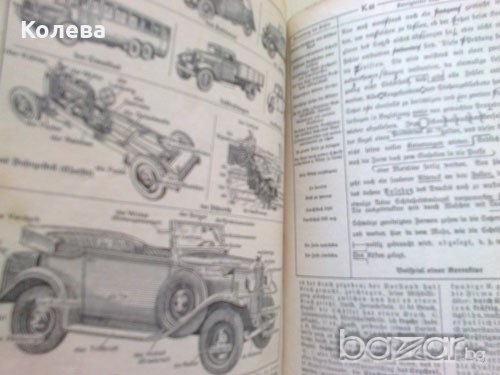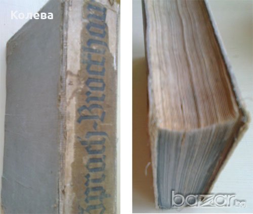 Немска енциклопедия с дългогодишна история. И много интересна. Предложеното издание е от 1938 г. Книжното тяло е здраво и напълно годно за ползване. Захабен е външният вид. Листовете горе при затворена книга са запрашени. Цена 20 евро.