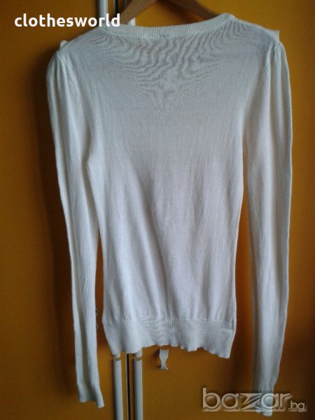 Oтлично състояние, размер XS/S. Дължина отпред 51 см, на гърба 57 см, дължина ръкав от рамото 67 см, широчина измерена под мишниците 30 см. Мека и приятна материя.
