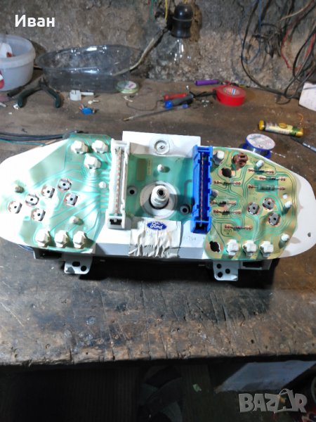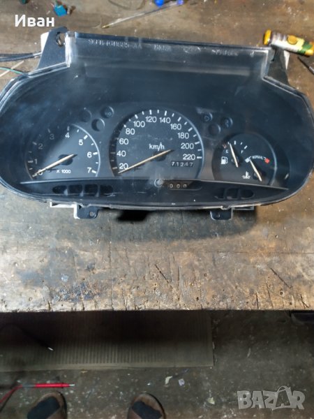 Автомобила е бракуван.Продава се на части.Ето някои цени:-табло километраж-60 лв-преден ляв фар к-т с мигача/Испански/-50 лв-ляв фар за мъгла-15лв-стартер-80 лв-генератор/динамо/ G4X2A-80 лв-става за:Ford Transit,