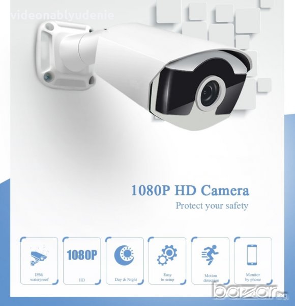 FULL HD 1080p AHD/TVI/CVI/CVBS 2 Мегапикселова охранителна видео камера с InfraRed подсветка от 4 H.LED ARRAY лампи от 5-то поколение (Тайванска военна технология), осигуряващи кристална картина и голямо работно разстояние през нощта. AHD (Analog High Definition - най-високо качество) е нова технология с усъвършенствана CVBS (COMET*) & HD Видео трансмисия, позволяваща пренос на видеосигнал с 2 мегапикселова резолюция 1080p по коаксиален кабел на разстояние до 700 метра (RG6). Този вид системи не изискват изграждането и конфигурирането на мрежа, използват традиционната схема на свързване с коаксиален кабел и BNC конектори между камерата и видеорекордера, което прави възможно използването на съществуващи коаксиални трасета. Поради липса на компресиране на сигнала в камерата, технологията позволява наблюдение с мегапикселова резолюция, без закъснение/накъсване и без сложно конфигуриране. Липсата на допълнителни мрежови устройства - сървъри и софтуер, прави AHD системата оптималното решение за мегапикселово видеонаблюдение – икономично, лесно за инсталация, надеждно и опростено.
