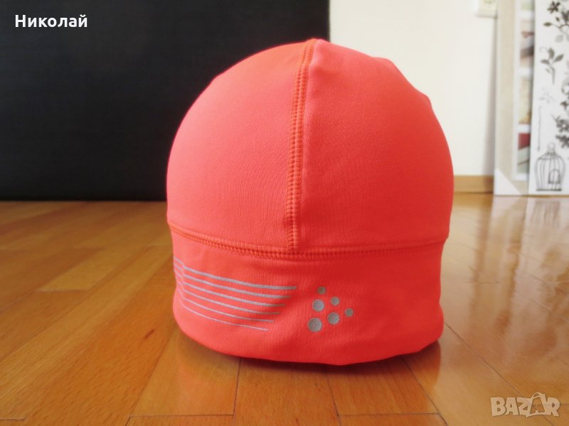 ---електриково розово -оранжевата - Craft Running Hat-размер С-М. Цена 28лв. неразличима е от нова. Ветроустойчива материя. От вътрешната страна е с мека поларена вата. Обиколката в основата е е 48см.