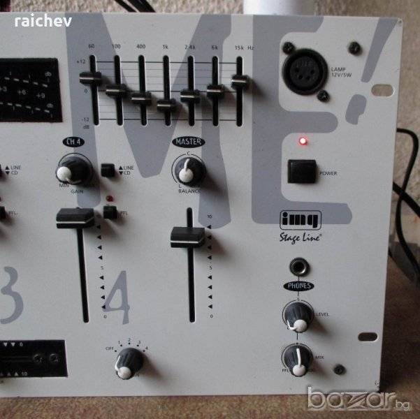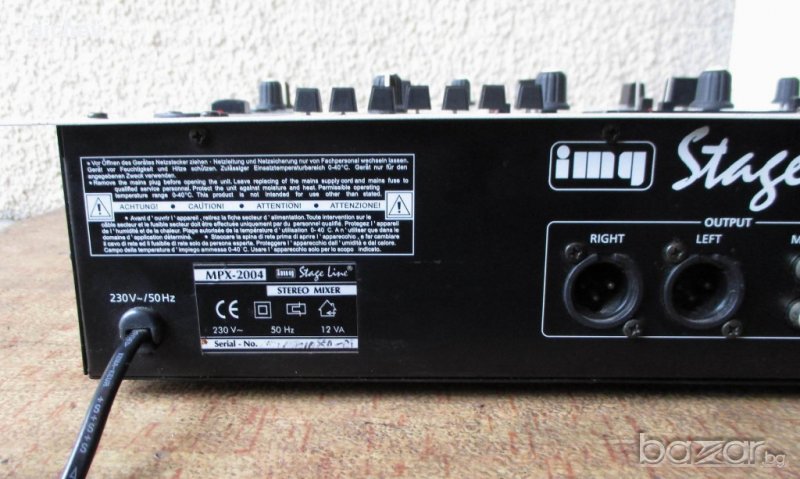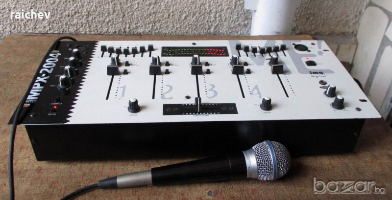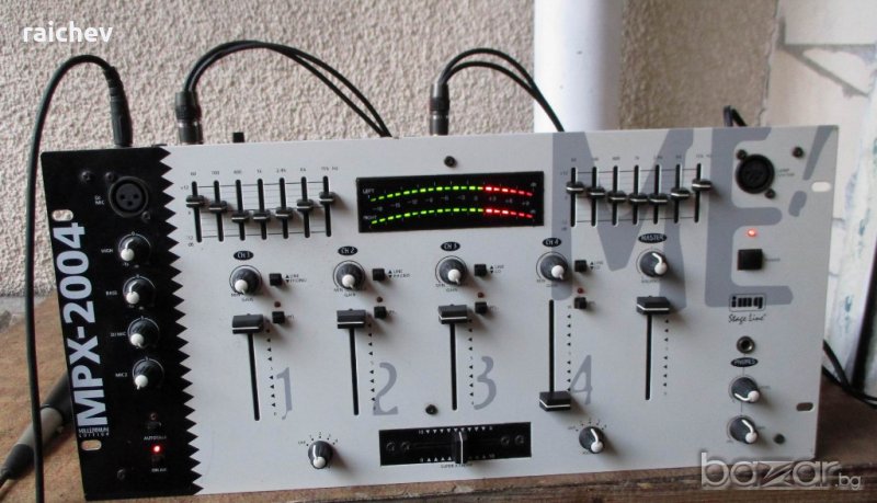 MONACOR/STAGE LINE – MPX-2004 – Качествен 4 + 2 канален миксер. Входове – 2 микрофона, 2 грамофона, 6 линейни входа. Изходи XLR,балансирани, RCA мастер и изход за запис. Атрактивна LED индикация. Двоен 7 канален еквалайзер – +/-12 dB / 60 Hz, 100 Hz, 400 Hz, 1 kHz, 2.4 kHz, 6 kHz, 15 kHz.Всеки канал е с гейн, а изхода е с баланс. Микрофоните са с отделни корекции за ниски и високи. Фадер с превключване на каналите. Потенциометри и плъзгачи в отлично състояние. Перфектен технически и с много добър външен вид. Размери – 82 x 110 x 222 mm. Тегла – 4 кг. Качествен саунд. – 190 лв.