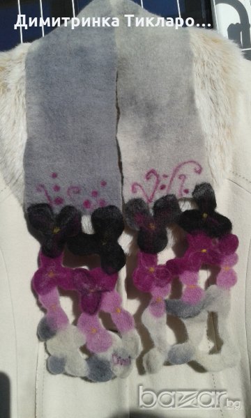 Вълнен шал,изработен с техниката плъсти в сиво и лилаво.Дължина 134 см. , ширина 14 см.