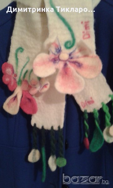Вълнен шал ,изработен с техниката плъсти от две части.Дължина 128 см.,ширина на двете части 19 см.