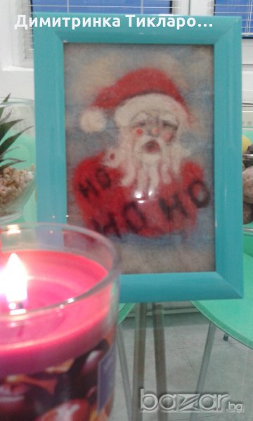 Коледна картина ,изработена от вълна,поставена в рамка за снимки.Размер 10/15 см.