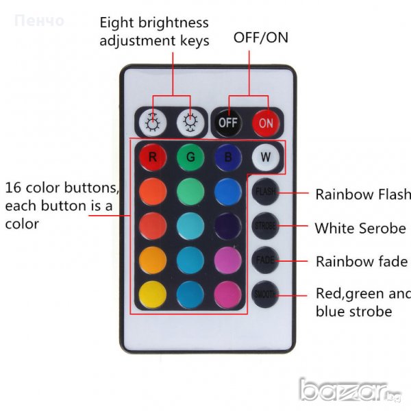 1 бр. Дистанционно управление RGB (батерията не е включена)