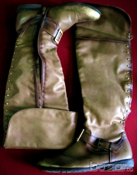 50 лв. Чизми носени един сезон, от изкуствена кожа с ципове и позлатени капси. Цвят капучино - на последната снимка е най-близък до истинския. № 40, но стават и на № 41.