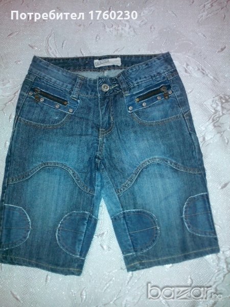 Продавам къси дамски дънки/тип бермуди. Размер 25. С по две джобчета отпред и отзад. Без забележки!