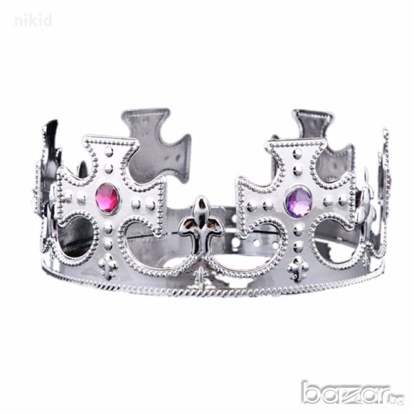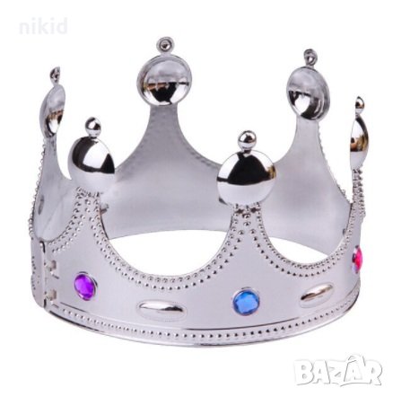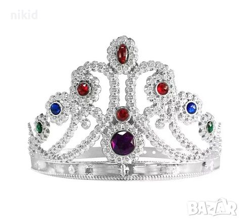 детска царска корона сребриста златиста пластмасова кръст със цветни камъни → Обява 19916372