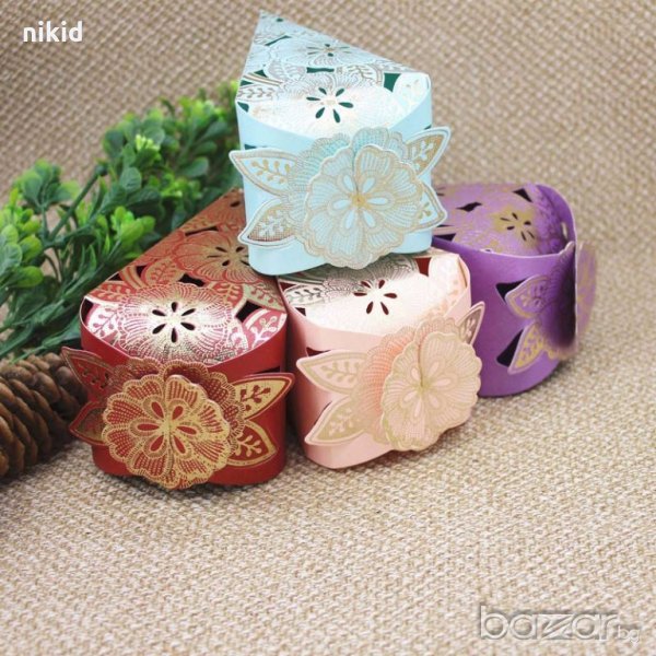 5 бр парчета 4 цвята картонена торта на парче златисти цветя декор → Обява 19918631