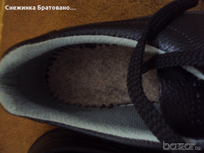 Мъжки обувки от естествена кожа с допълнително бомбе от желязо. Много топли, здрави и отпред това бомбе им дава допълнителна устойчивост при ритане, дъжд и удар. Стават за работни обувки, както и за сняг. Номер 45. Италиански.Черен цвят.