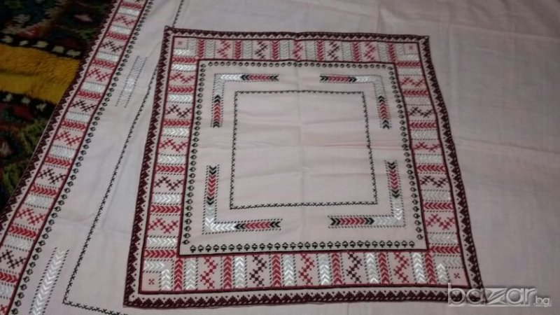 Ръчно бродирани комплект покривка за маса и каре битови.