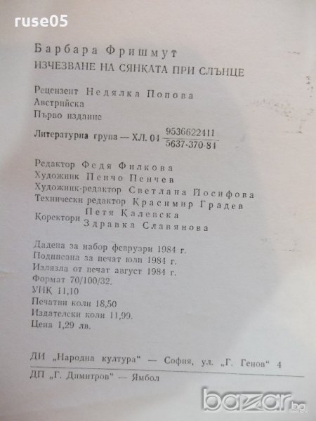 Книга "Изчезване на сянката при слънце-Б.Фришмут" - 296 стр. → Обява 19944398