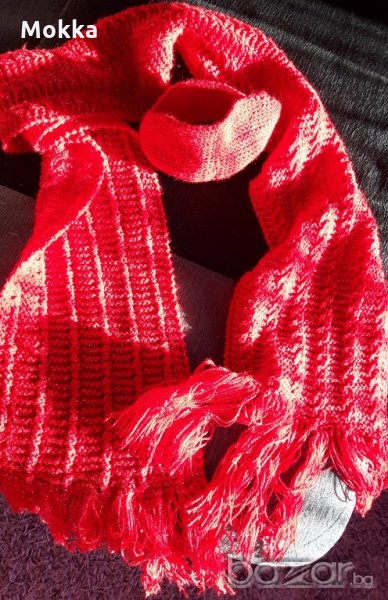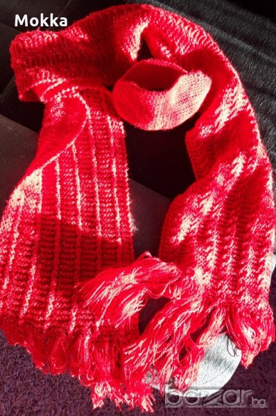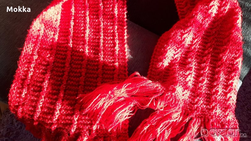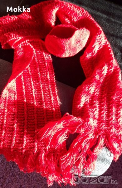 Ръчно плетени шал и лента за глава в разкошен ярко червен цвят и лъскава сребриста нишка придаваща елегантност!