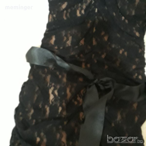 Дамска рокля с черна дантела и подплата цвят пудра, с коланче, нова