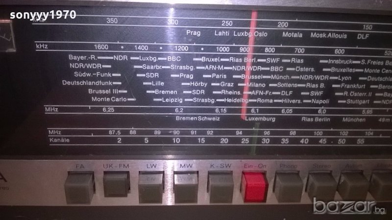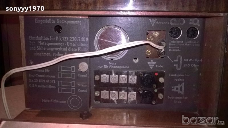 здрава и маркова тежка антична немска машина в свеж вид и здрава технически-краина цена-бартери не-работи и свети индикатора и с здрав усилвател-свирят и двата канала-подавах сигнал от петиците-тунера работи но въжето му е скъсано-пращам с тест с еконт-естествен фурнир и як и плътен дебел лак-красота и качество-и щепсела му е