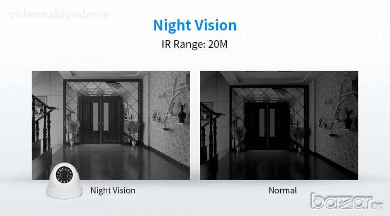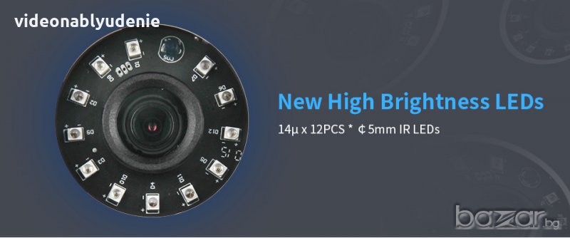 Камерата за видеонаблюдение осигурява 720P HD резолюция от 1 мегапиксел, фиксиран 3.6мм обектив с HD 3MP лещи и нощно виждане с обхват до 20 метра чрез 12 Броя LED от ново поколение с висока яркост.