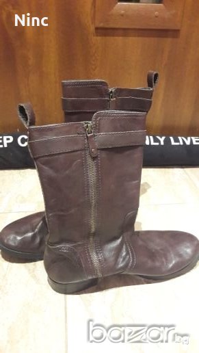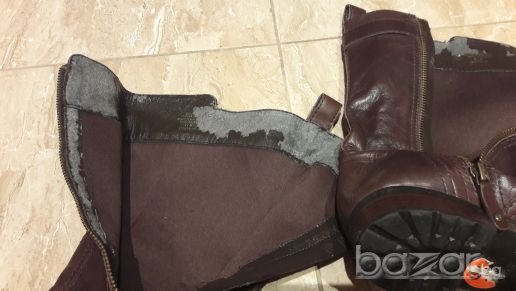 Ботите са оригинални от ест.кожа само вътр.част където съм снимала е изк.кожа и се лющи,но може да се изчисти нацяло.Номера е 39.5.Стелката е 26.см.Високи са 26 см.Прасеца е 37 см.