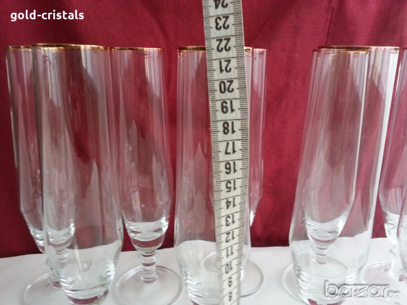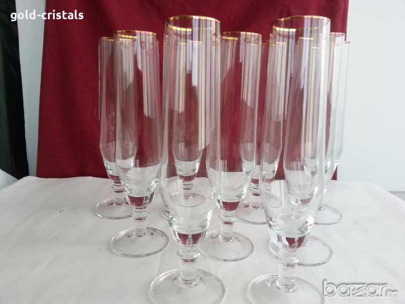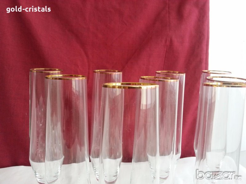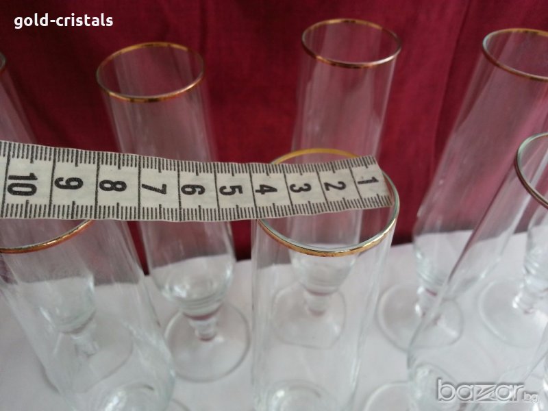 кристални чаши с златен кант 9бр-85лв кристално калиево стъкло с приятен звън старо българско производство кварц сливен неизползвани позлата кристално стъкло сервиз комплект сет лот стари ретро арт декор винтидж колекция стари ритуални чаши за сватба годеж златен кант позлата чаши на столче стари антикварни предмети обзавеждане за дома и семейството подходящи за подарък за ценители и колекционери