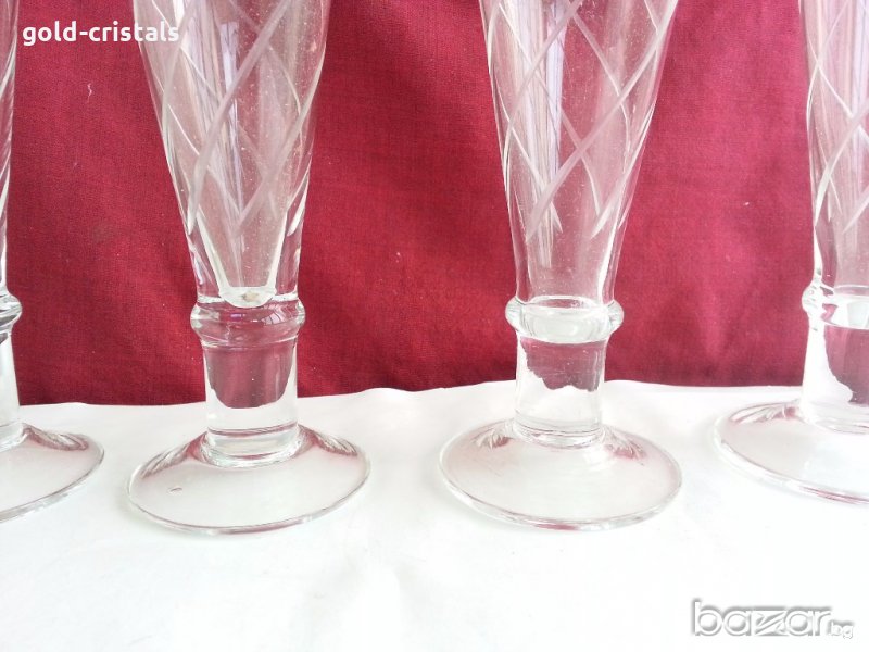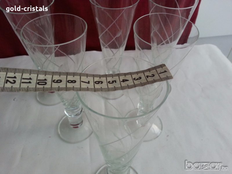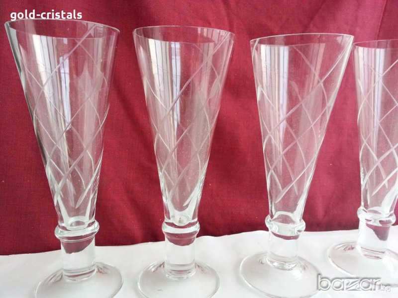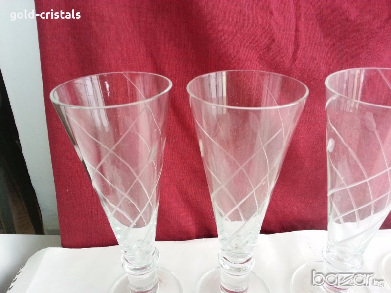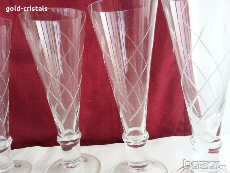 кристални чаши за шампанско неизползвани 6бр-40лв гравирани кристално калиево стъкло българско производство на завод кварц сливен неизползвани сервиз комплект сет лот ретро арт декор винтидж колекция стари антикварни предмети обзавеждане за дома и семейството подходящи за подарък за ценители и колекционери