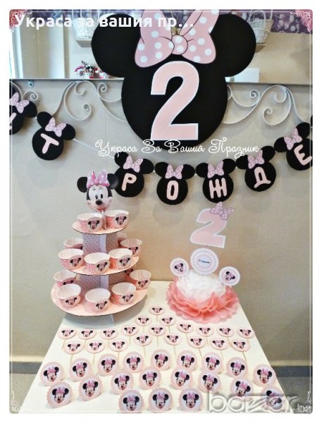 украса и аксесоари на тема Мини Маус за детски рожден ден