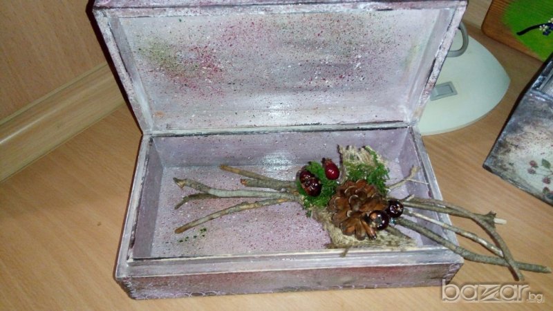 Стара кутия от средата на 50-те години с нова визия.Изработена с декупаж и ..Размери 22х12х6см.Завършена с водоустойчив лак.
