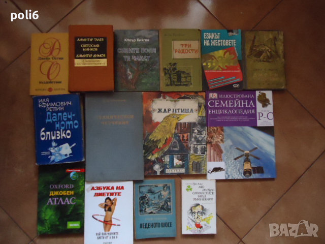 КНИГИ С ЦЕНА 2лв/бр : Масовата култура Богомил Райнов,Рязко Людмил Станев,Даяна нейният нов живот Андрю Мортън,След полунощ Лиляна Стефанова,Сезони Роза Манова, Глас Блага Димитрова ,Анри Барбюс Анета Видал,Маркс Енгелс Марксизъм Ленин,Утрото на хипертронна ера Петьо Добринов,Завръщане от житните поля Ладислав Фукс,Пред разсъмване Мао Дун,Планетата х потоп или спасение Григоров Тодорова,Вълча нежност Стеф Пени,Мениджмънт Камен Каменов,Математически игри Владимир Чуканов,Декоративно рибовъдство Марк Михалин,Бележити българи том3,Вдъхновения Иван Бухов,Вдъхновения 2 Иван Бухов,Ана-не Агустин Гомес Аркос,Павел Вежинов том1,Павел Вежинов том3,Замъкът на Шапкаря Арчибалд Кронин,Взаимозаменяеми резервни части за леки автомобили и мотоциклети,Здравко Сребров избрани повести и разкази,Политическа икономия на Капитализма ,100 шедьоври на славянската любовна лирика,Ленин том14,Убийства в библиотеката Джо Дереске,/////////КАШ3 Novell Net Ware ,Степ Чехов,Красивите чужди брегове Любен Станев,През Москва до Токио и Хирошима Т.Христов,Игриви хищници Иван Херан,SINGAPORE Guide Book,Система на националните сметки Велина Балева Пенчо Иванов,Кой ще бъде благословен - библейски разкази,Божии обещания - библейски разкази,Спайдърмен брой22,Африкански приказки,КНИГИ ПО 3лв/бр Момичето с перлената обица Трейси Шевалие,Висша математика част 4,Мъртви преди мрак Шарлейн Харис,Моя любима Джесика Сандра Филипсън,Невинни години Едит Уортън,Горещо лято Линда Хауърд,Оноре дьо Балзак том 2,MS-DOS 5,0 Йозеф Щайнер,Бързам да порасна Виолета Борисова,История на всесъюзната комунистическа партия,Любимо от родната кухня Манчев и Шишков,Речник за кръстословици 45 хиляди думи,Практическо помагало за решаване на кръстословици,Вечната Амбър Катлийн Уиндзор,Смъртта на един пчелар Ларш Густафсон,Краткий физико-технический справочник,КНИГИ ПО 4лв/бр: Въздействие Джейн Остин ,Димитър Талев Светослав Минков Димитър Димов в спомените на съвременниците,Сините поля те чакат Клеър Кийган,Три радости Горчивкин,Езикът на жестовете Александър Вем,Джери островитянина Джек Лондон,Далечното Близко Иля Репин,Техническое Черчение Могильньй /Техническо чертане/,Жар птица ,Илюстрована семейна енциклопедия том12,Джобен атлас Оксфорд,Азбука на диетите,Ледено шосе Ариф Сапаров,Ако импресионистите бяха зъболекари Уди Алан,КНИГИ ПО 5лв/бр С твоята усмивка Надя Кехлибарова,На Ловъ за мечки Майн Рид,Манхатън почти събитие Палми Ранчев,Поетичен Букет Райко Божанов,Сергей Есенин стихотворения и поэмь,Зад завесата на соца Калин Тодоров,Интерпол вчера сегодня завтра Родионов,Нещо лично Лий Чайлд,Кралица Елизабета Литънъ Стречи,По стъпките на елените Шахов,Видин мост Янчо Янчев,Уинстън Чърчил мемоари том3,Папа Йоан Павел 2 поезия есета драма,На пътя без компас Любен Недков,Системи за проектиране в микроелектрониката,История на света Праисторически свят ,/// лично предаване в Надежда 2 на Фантастико или метростанция Надежда