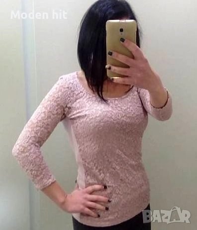 16. Цена 4,50 евро. AMISU блуза с дантела цвят пудра. Отлично състояние. Ръкавът е 7/8-ми. По етикет е размер S.