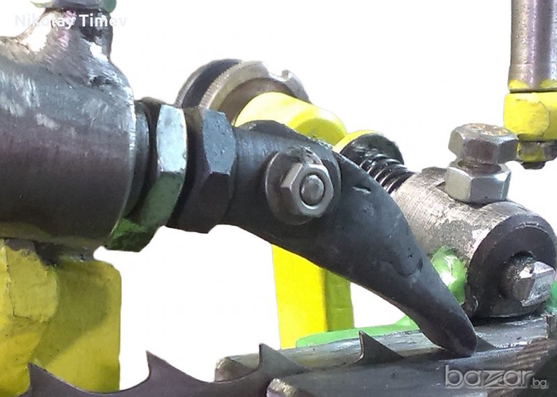 Машината е изключително здрава и масивна. Елементарна и надеждна за работа. Чапразиращия апарат е проектиран за удобна работа и бърза настройка само ръце! Не е нужно да имате цяла маса с ключове до вас за да правите настройки, така както са повечето чапразила на пазара (да не говорим за вертикалните италиански и немски такива, чиято настройка граничи със садомазохизъм!!!). Подходящо е както за малки натоварвания така и за силно натоварени цехове. Машината е окачена на лагери - 22 броя, няма евтини и глупави изпълнения с втулкови сглобки, както се среща по повечето видове други чапразила. Това позволява да работи надеждно и без луфтове дълги години наред без да се притеснявате, че ще се появят луфтове, които водят до проблеми с чапразирането на лентата. Закалени оси, шпилки, избутвач и притискачи!