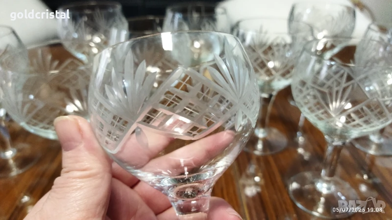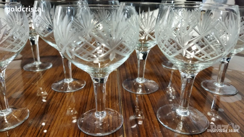 ретро стъклени чаши ръчно гравирани 10 бр-150лв една с забележка на столчето сервиз комплект сет лот ретро арт декор винтидж колекция стари антикварни предмети обзавеждане за дома и семейството за вино шампанско десерти сладолед мелби декорация свещи и други стари антикварни предмети обзавеждане за дома и семейството подходящи за подарък за ценители и колекционери
