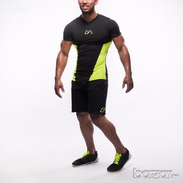 Маркови тениски за фитнес Gym Aesthetics Черно със Зелено