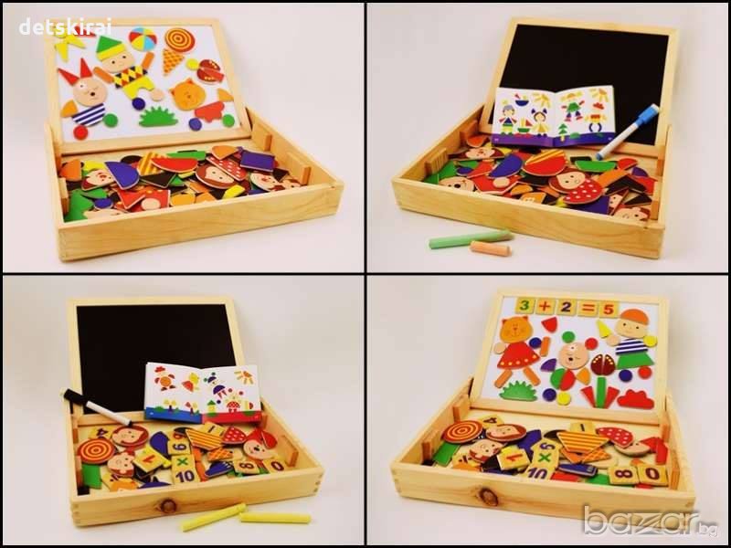 Куфара съдържа комплекти ртазлични магнитни елементи, като : числата от 1 до 10, лица, животни и други елементи с които могат да се изграждат човешки фигури, животни, предмети и различни ситуации.