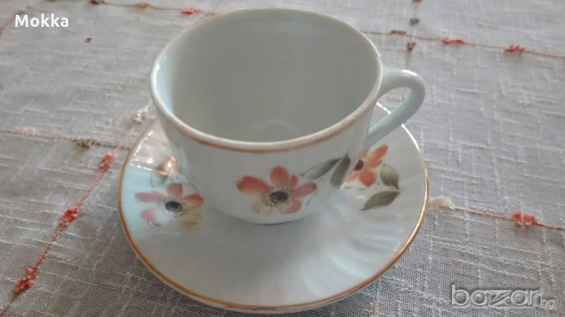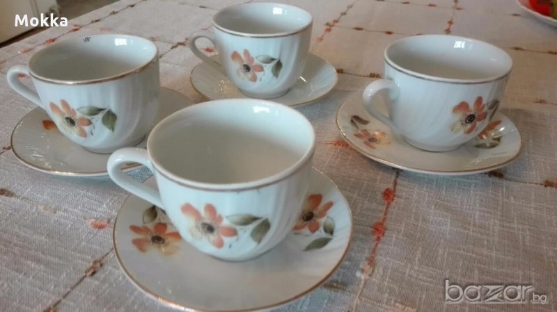 Сервиз за кафе български порцелан, производство 1985 г. състоящ се от четири чаши и четири чинийки.