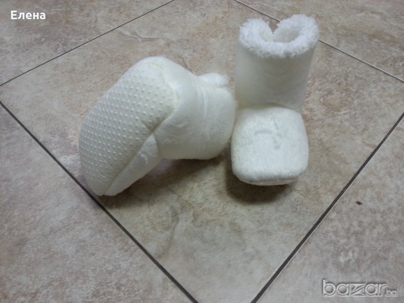 НОВИ плюшени бебешки декоративни ботушки турско производство. Номерът, който е наличен е с дължина на подметката 13см. (стелка 12см.) Цветът е бяло. При интерес мога да предложа и други цветове.