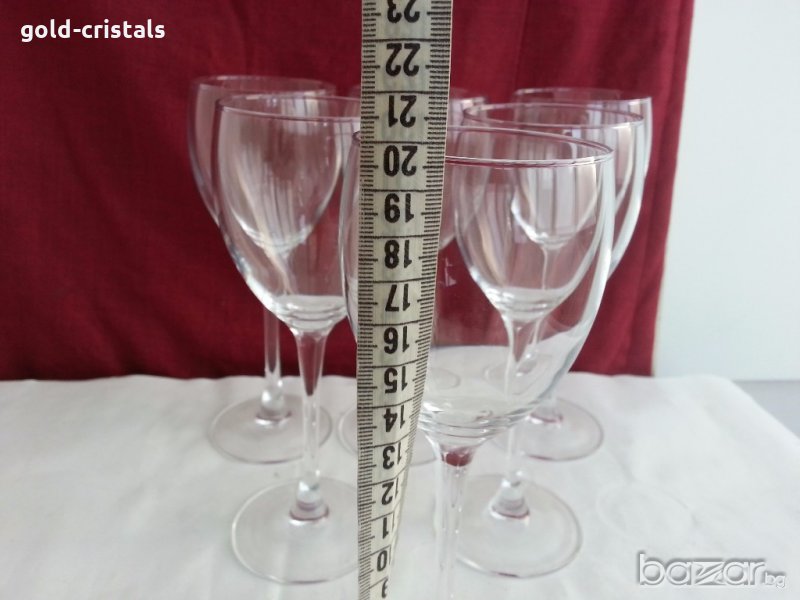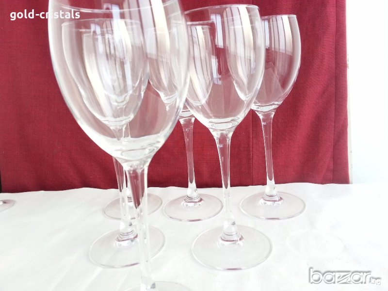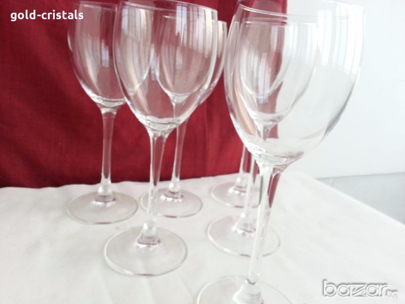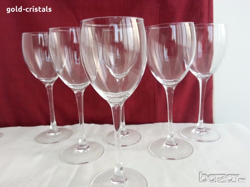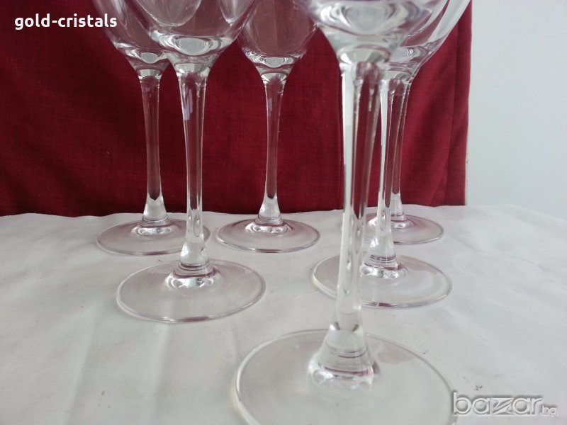 сервиз френски кристални чаши за вино 6 бр високи 20см вместимост 200мл маркирани за произход кристално стъкло изчистен дизайн неизползвани без кутия комплект сет лот стъкло чаши на столче ретро арт декор винтидж колекция стари антикварни предмети обзавеждане за дома и семейството подходящи за подарък за ценители и колекционери