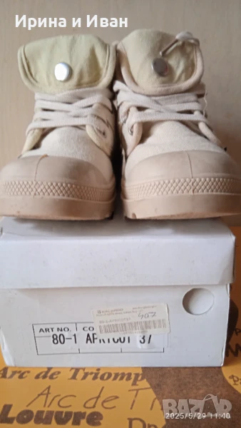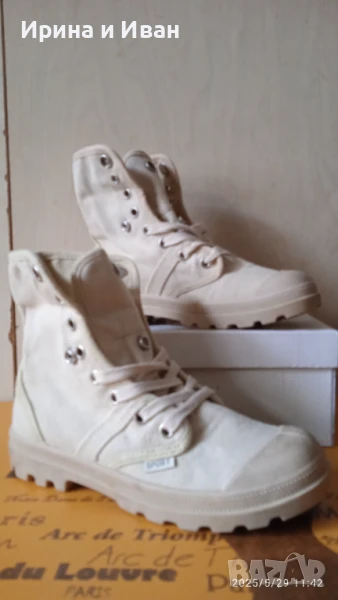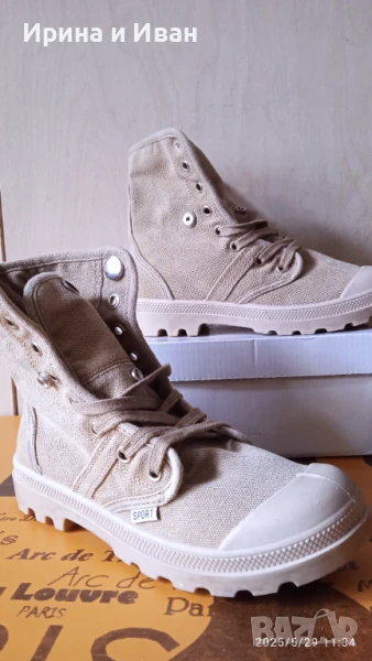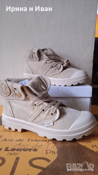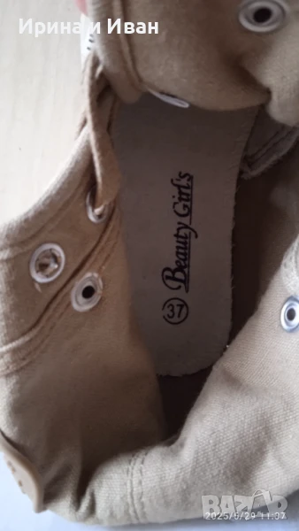 Нови кецове, маркиране 37, но в действителност те са по-малки, дължината на стелката е 22,5 см ... Има два цвята: каки и бежови, продавам ги за що то не е моят размер.