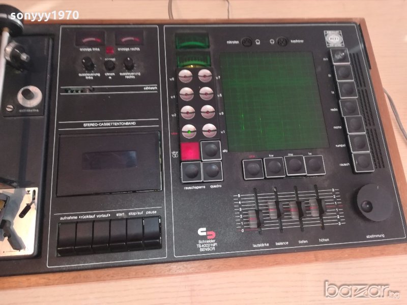 голяма тежка истинска немска машина-грамофона работи и върти и механиката му е здрава-липсва иглата-касетата е здрава и свири и индикаторите и са ок-тунера е здрав с сензори и стереото свети и индикаторите му са ок-усилватела е с изходи за 4 канала и работи-левият дерка леко-от днес 28.02.22г пращаме със спиди или еконт с преглед и тест след превод на капаро за куриерската услуга поради зачестили некоректни потребители-поръчки само тук в саита! по телефона и със смс не! краини цени! бартери не правиме! всеки ден нови неща-още 2-3 наши обяви тук