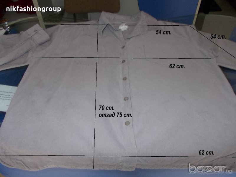 Материята е 100% памук. Ризата не се разстяга. Без етикет е, но няма външни следи от употреба. В отлично състояние е. По етикет е EUR 44-46, което отговаря на ХХЛ размер.