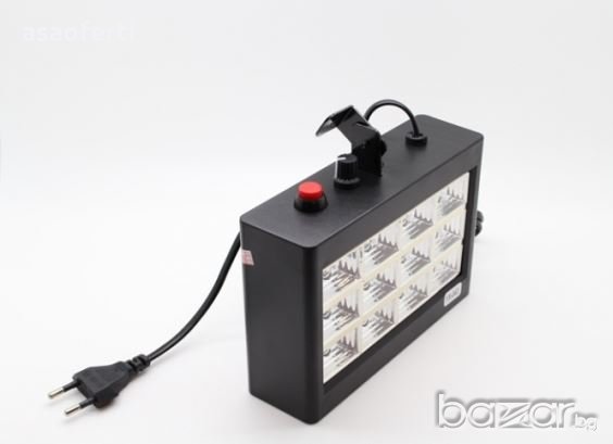 стробоскоп YX-043 с цветни LED светлини! Това невероятно устройство има 12 мощни рефлекторни светодиода, по четири от цвят - червен, зелен и син цветове. От комбинацията на цветовете ще видите също така жълто, бяло, лилаво, тюркоаз. Вграденият микрофон позволява светлината ритмично да реагира на музиката в два режима - близ ефект и динамична промяна на цветове. Светлинните ефекти, които получавате със стробоскопа, са един невероятен фон на Вашето парти. Компактният стробоскоп ще подчертае ритъма на музиката, в съчетание с други светлинни ефекти.