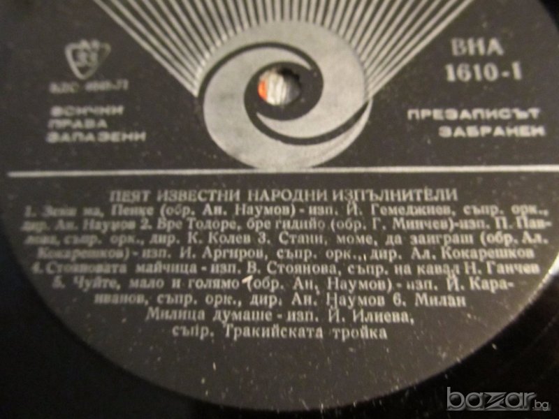 грамофонна плоча народни Пеят известни народни изпълнители -изд. 70те години - народна музика .