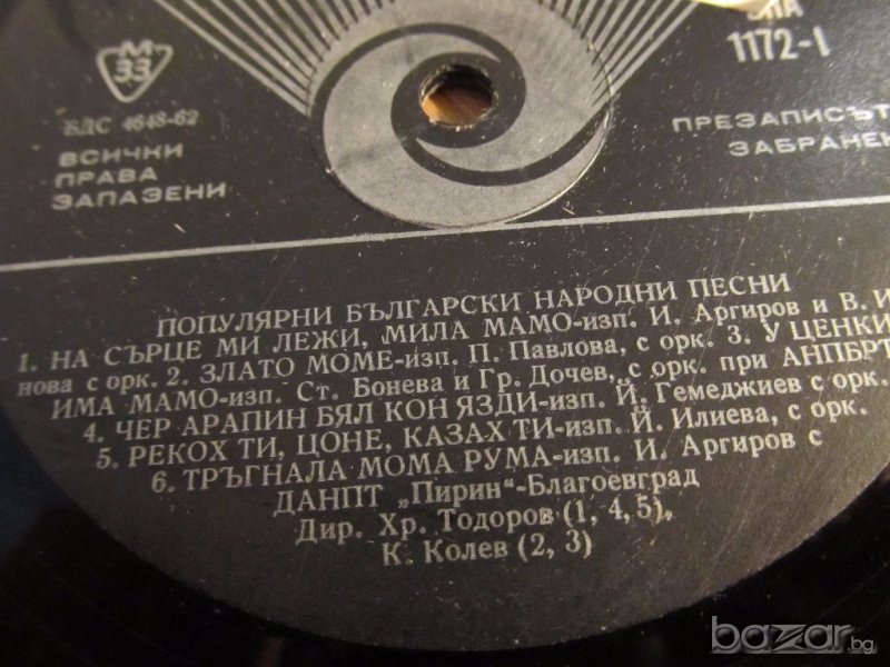 Рядка Грамофонна плоча - Популярни български Народни песни -изд. 70те години - народна музика .