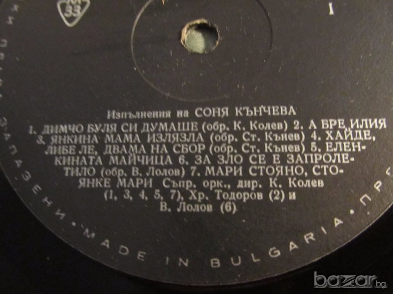 грамофонна плоча народни Соня Кънчева - Народни песни -изд. 70те години - народна музика .