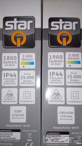 LED ЛАМПИ STAR - аплик подходящ за таван и стена - кръгла ф28, квадратна 28/28см