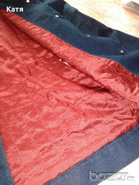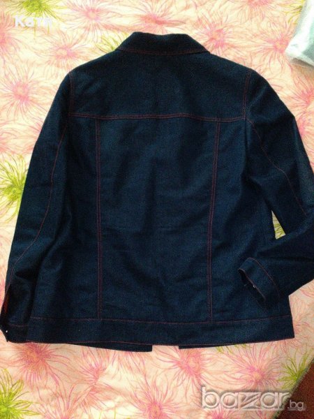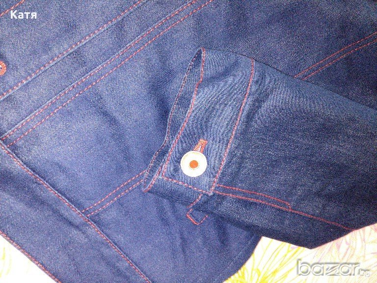 Продавам ново, есенно, ватирано, синьо, дънково яке, топ марка Gil Bret, с ватиран хастар, тънка вата, подходящо за пролет и есен, цвят тъмно синьо - индиго, ефектен модел, с червени конци, червени копчета и червен хастар. Стои страхотно, якето е без етикет. Якето е размер М, но ако Ви интересуват точните мерки, моля пишете ми.