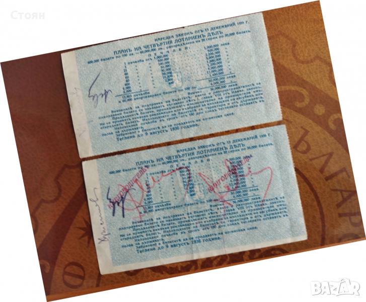 Царски лотариини билети от 1936 г., снимка 1 - Нумизматика и бонистика - 20168671 Царски лотариини билети от 1936 г., снимка 2 - Нумизматика и бонистика - 20168671 1/2