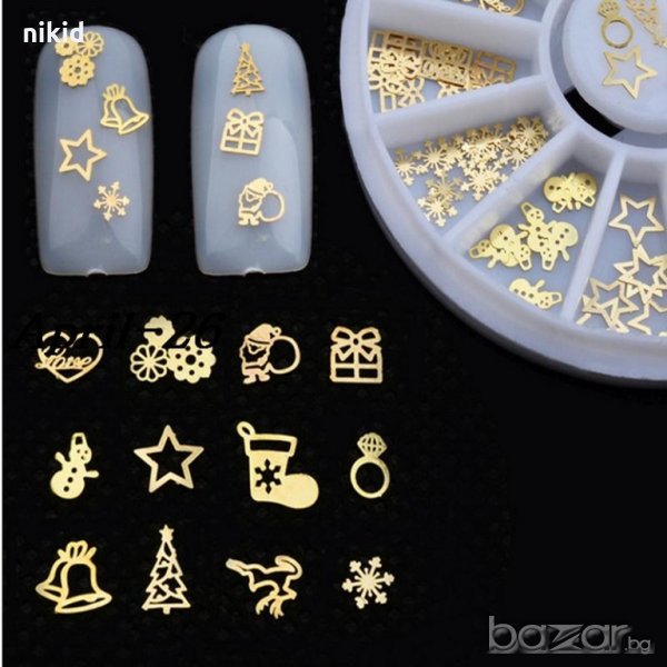 3D златисти тънки коледни фигурки 12 вида за вграждане в нокти маникюр → Обява 20174811