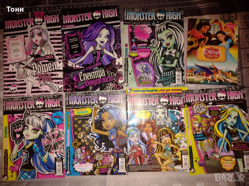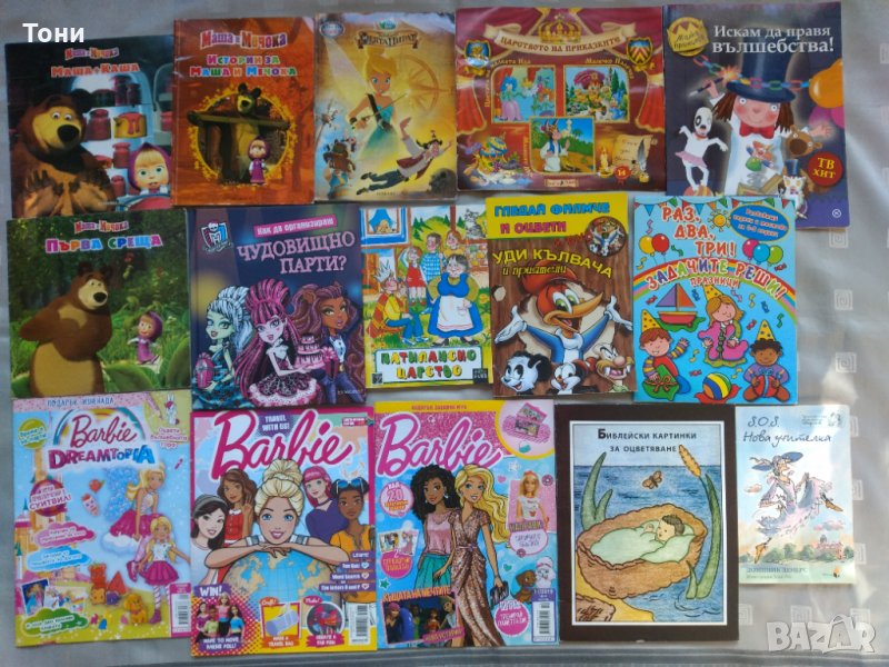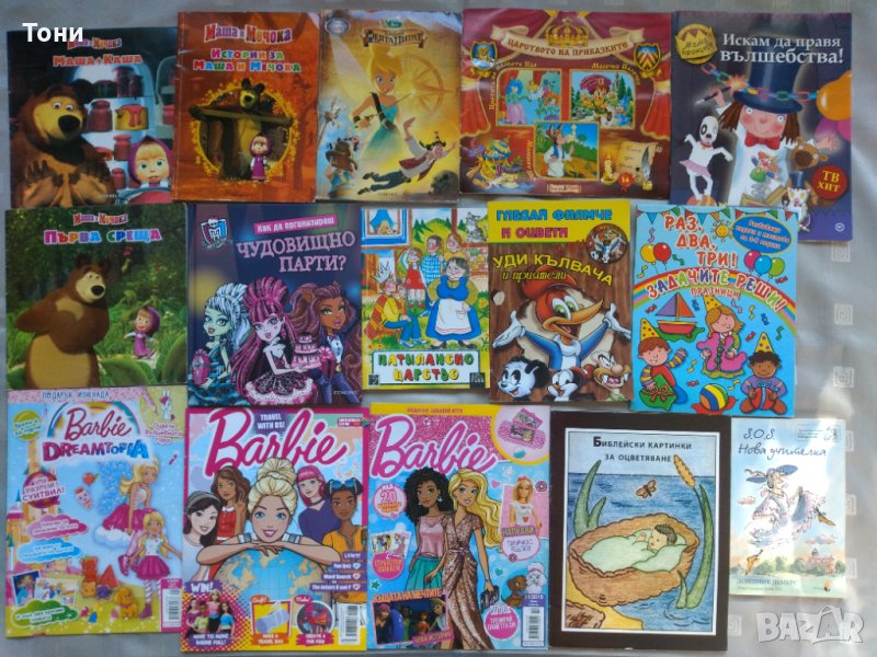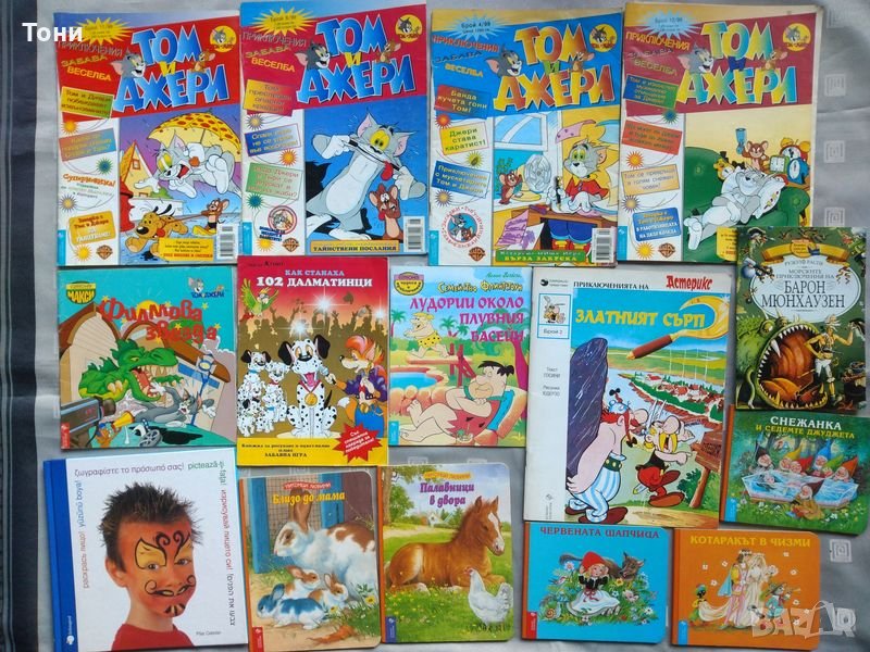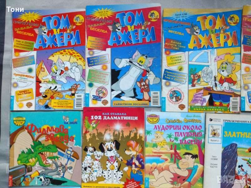 Семейство Флинстоун. Бр. 3 / 1993 страници 34 Егмонт България .Ново- 1994 г брой 6 ,Приключенията на Астерикс -Златният сърп .Брой 2 1993 г страници 46 .Формат: 205 /285 Егмонт България Ново -..Том и Джери 1999 брой 4, Том и Джери -филмова звезда 2000 г . Д. Barbie 2006 г ,брой 7 ,2007 г брой 2 ,2010 брой 7 ,2011 брой 3 и 10 .Принцеса 2006 брой 4 ,2010 брой 2 и 5 , 2011 брой 4 и 6 . Ян Бибиян 1992 г ,Патиланци 1985г ,чудото на раждането -нова и много други