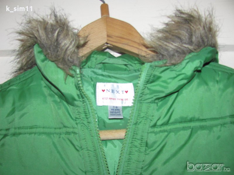 2 бр. зелено зимно яке на Next за 7-8 г. Топли и подходящи за сезона, 2 джоба, закопчават се с цип, качулката не се сваля. Състоянието им е много добро. Цената е за 1 яке!